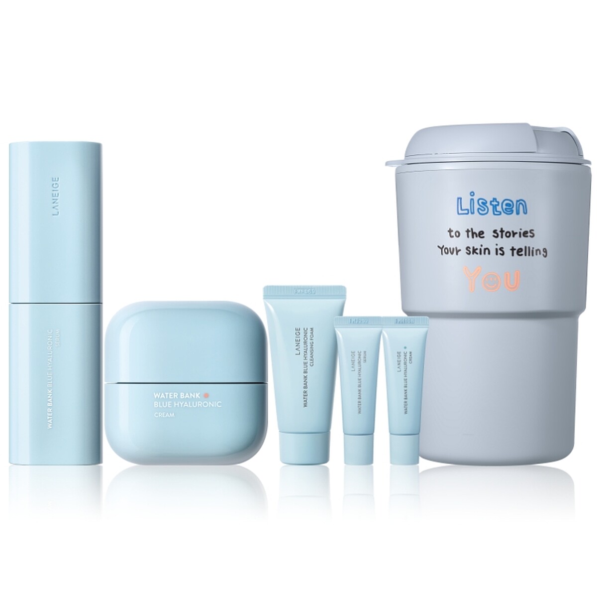 內容:水酷修護保濕精華(清爽/水潤)50ml正貨、水酷修護保濕雙(清爽/水潤)50ml正貨、水酷修護保濕精華(清爽/水潤)10ml、水酷修護保濕霜(清爽/水潤)10ml、水酷修護水潤洗面乳10ml、蘭芝水酷NOVO聯名杯。