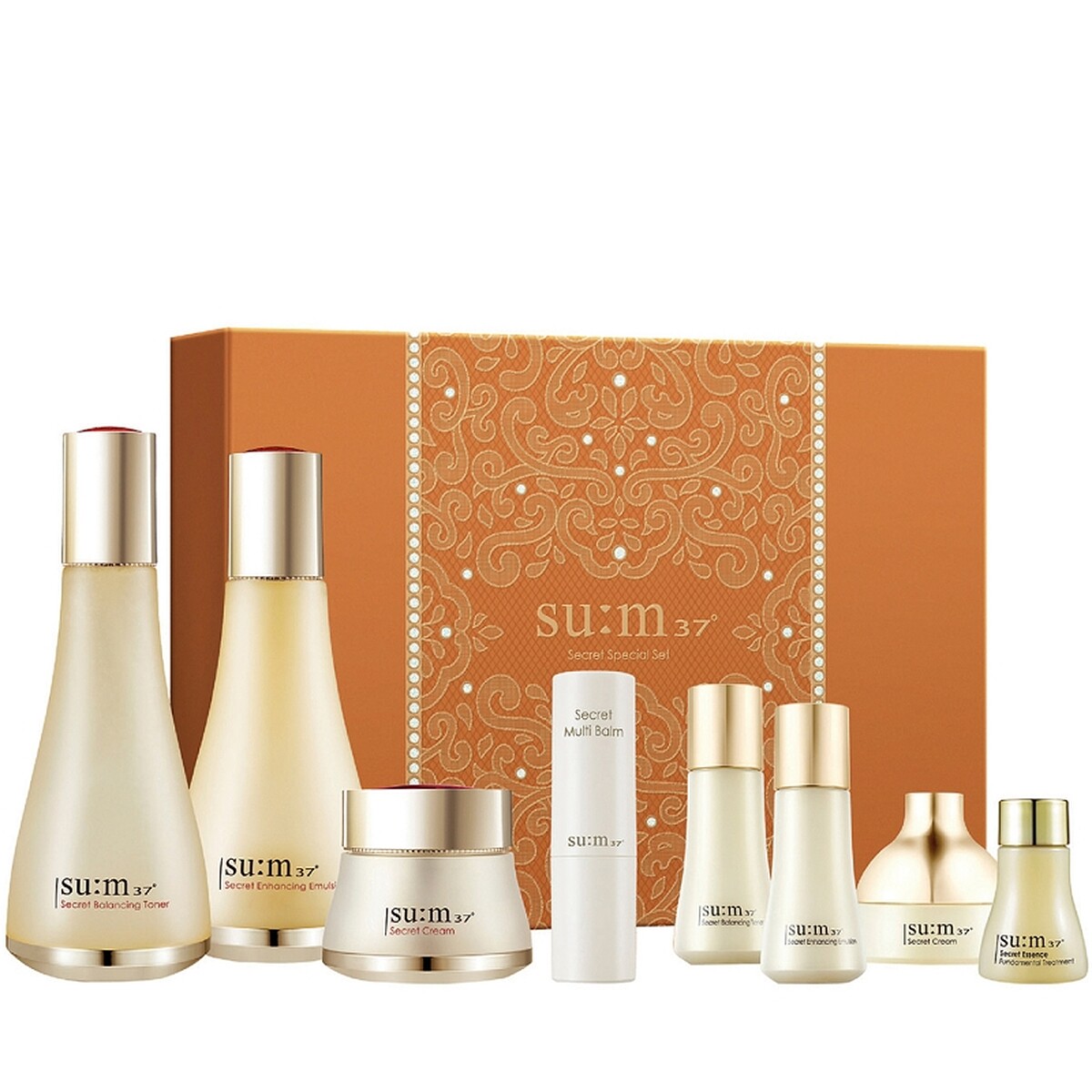 內容:「小棕瓶」特潤超導全方位修護露50ml正貨,贈送細緻煥采潔面乳30ml +微分子肌底原生露30ml+特潤超導修護露7ml+特潤冰導眼部精華5ml+特潤賦活精萃5ml+年輕無敵膠原晚霜5ml+特潤眼部超能量修護霜3ml+年輕無敵膠原霜5ml+粉持久完美持妝粉底SPF10/PA++(BONE)7ml+絕對慾望唇膏精巧版(#420)2.8g。