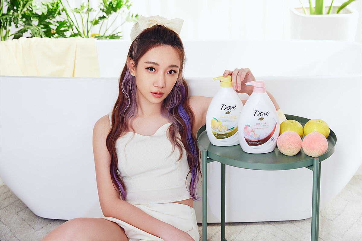 Julia分享自己小時候在澳洲,全家人用的沐浴產品就是多芬經典藍白包裝的「滋養柔膚沐浴乳」,多芬對她來說「就像家庭中的一份子」!這次點燃她少女心的是「多芬Go Fresh沐浴乳」系列,使用清爽水透益生元配方,好沖洗不黏膩、再加上質地輕盈水潤,連香氣也是清新舒爽的6款花果香氣與粉嫩包裝!讓Julia一用就愛上~她說:「以前是跟著爸媽用,這次不僅僅是香味,還有沐浴的感覺都讓我太喜歡了~真的有『意想不到的清爽』!洗後也不會覺得乾澀,因為有些沐浴乳使用完會讓你皮膚有種緊繃、乾燥的感覺,多芬Go Fresh洗完就是很輕盈、很舒服,肌膚水嫩水嫩的,香氣讓人感覺很放鬆。」