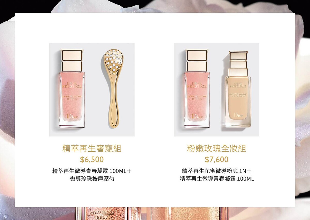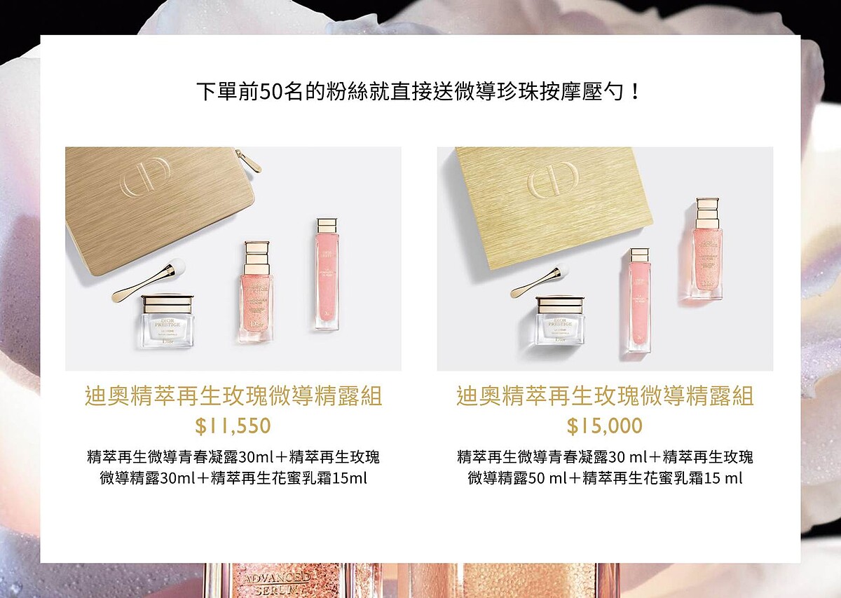 這兩款禮盒組合下單的前50名粉絲,直接獲得美容圈一致大讚的DIOR微導珍珠按摩壓勺,在家享受療癒保養儀式。