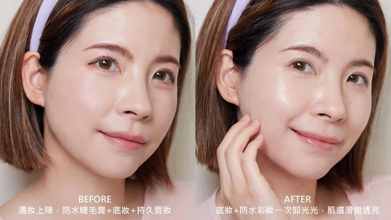 添加獨特Micellar淨膚微分子科技,可以幫助快速溶解彩妝與臉上髒污,不用卸妝棉在臉上來回摩擦,也可以卸得很乾淨。