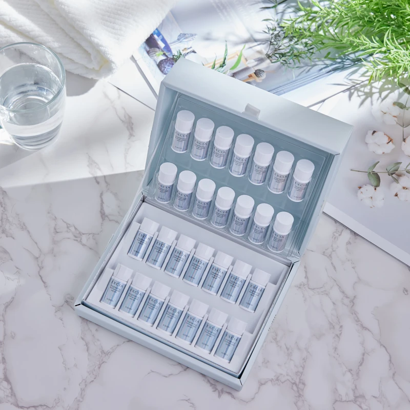組合裡總共有28罐小安瓶,一次用一瓶、塗抹至吸收即可,完整將1.5ml超強美白精華100%傳導至肌底,難怪肌膚愈擦愈亮。