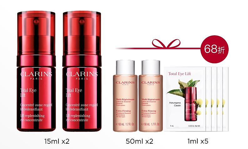 內含:全效緊緻眼霜15mlx2、煥顏緊緻彈力精華霜#檸檬百里香50mlx2、全效緊緻眼霜1mlx5
