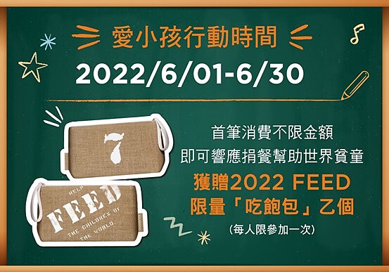 身為植萃專家、友善環境、愛護小孩的克蘭詩,每年6月首筆消費,不限金額(官網結帳輸入優惠碼【FEED】),都幫妳捐七餐給世界貧童吃飽同時提供就學機會,並送上FEED包乙個,追蹤IG@clarinstw台灣克蘭詩就捐出5元,響應喜憨兒基金會送愛到偏鄉計劃,讓台灣偏鄉兒童也有溫暖的餐盒吃飽飽!
