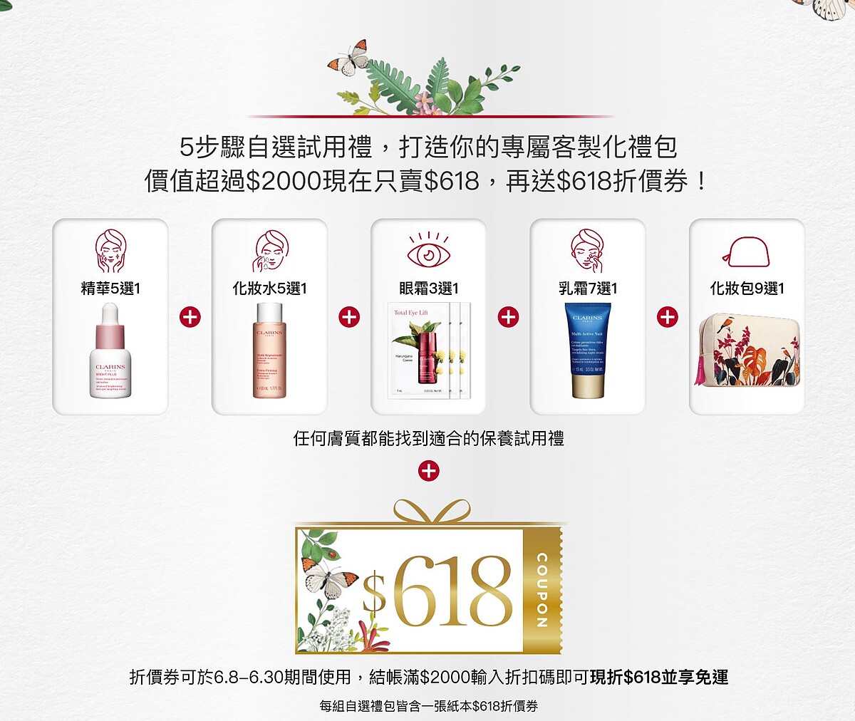 克蘭詩六月為了讓大家親手選擇自己想要的產品,推出618自選禮包活動,一開賣官網流量堪比強哥官司人數直線飆升,甚至人氣王賽車眼霜、黃金雙激萃已面臨斷貨危機,尚未開買的人,請速上克蘭詩官網參加不被拘束,獨家618自選大禮包解放行動,喜歡什麼就自己選,買完立刻送上NT618折價券。6月8日開始,也就是現在。馬上。立刻結帳滿NT2000就能折抵再享免運,而且克蘭詩有夠貼心,為了不讓大家荷包虧本,推出預購六大限定組合,全部都是熱賣款,使用折價券下單最划算,早買早安心,用新台幣+NT618折價券捍衛美肌很可以!