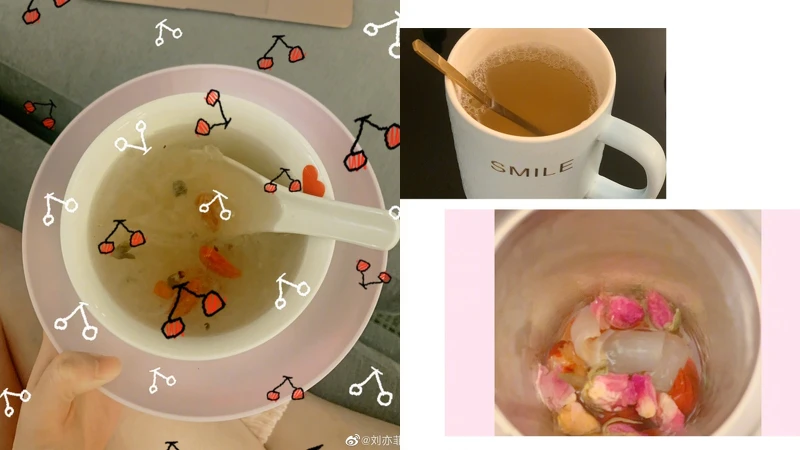 「喝」的對劉亦菲來說也很重要,當然每天多喝水是基本的,劉亦菲的日常分享中也能看到他喜歡紅棗燉銀耳,補充天然的膠原蛋白之餘熱量也低;玫瑰養顏茶,不僅能夠平靜心情,也能養出紅潤美顏。
