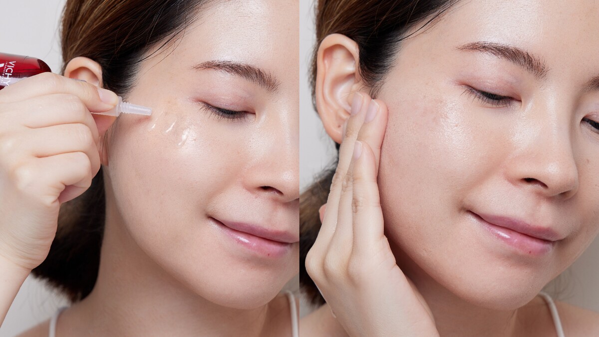 使用方法也超簡單,滴管設計精準控制用量,全臉使用可按壓4-5滴,延展至頸部肌膚,避免臉和脖子產生色差,並避開眼周肌膚,最後可以局部加強2-3滴,塗抹至吸收即可,後續可搭配常用的乳液加強保濕,白天出門務必防曬。