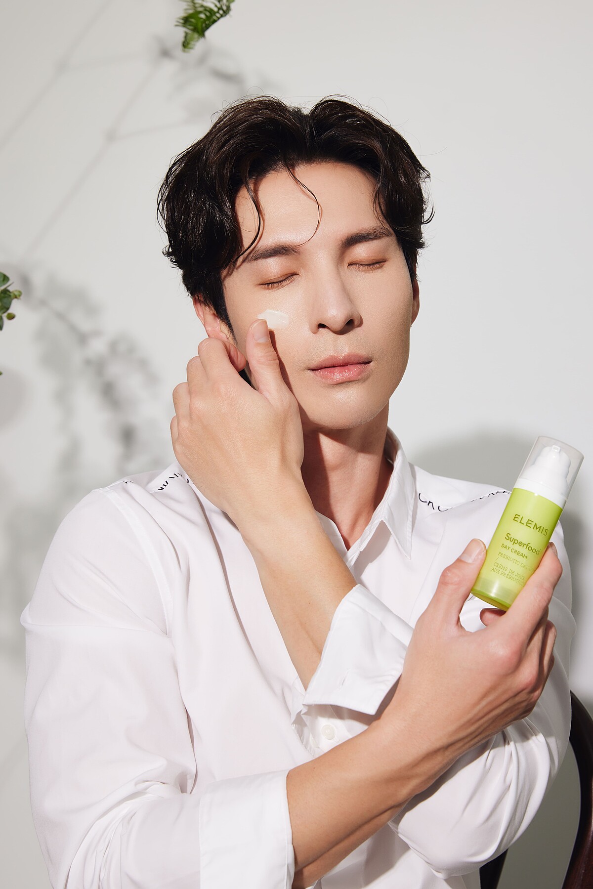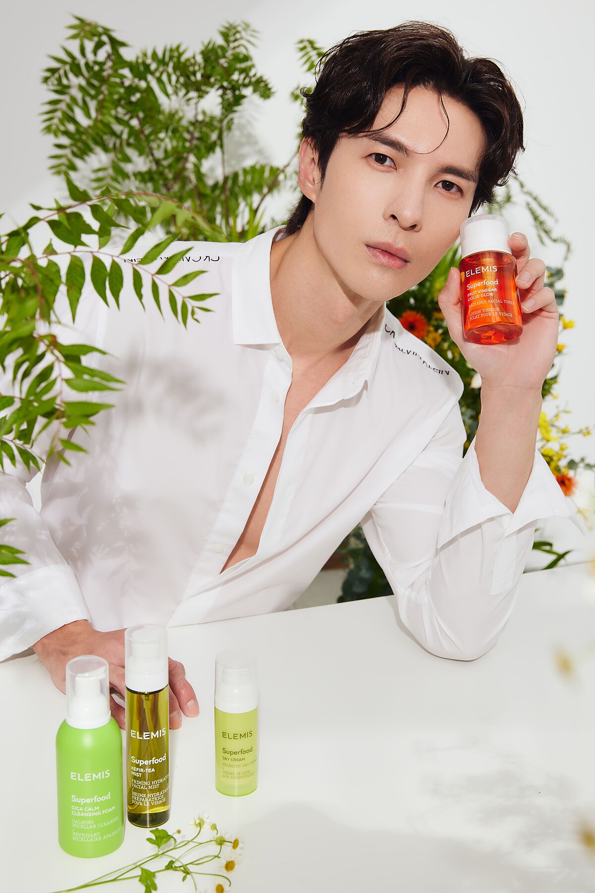 陳勢安說:「想找到生活的平衡,第一是你必須去找到,什麼是能夠提供你能量的東西。」講究吃的天然、用的健康,他與Elemis相遇就像命中注定!陳勢安堅信綠色能量能給身體帶來諸多好處,例如覺得最近腸胃有點負擔、長痘痘+肌膚暗沉時,就知道體內累積毒素,他會挑沒工作的一天,早上會空腹喝一杯冷壓水芹汁替腸道排毒,「水芹汁對身體排毒效果非常好,淨化腸道後皮膚會變很乾淨,連痘痘也能消掉,我還會喝檸檬水、一天一杯蘋果醋,任何富含益生菌的東西我都很喜歡。」令他驚喜的是ELEMIS超能量活顏系列使用的天然植萃成分,幾乎都是他正在吃的超級食物!有蘋果醋、莓果醋、花椰菜、生薑、抹茶和益菌生等等,訴求綠色保養和他的養生理念一拍即合!