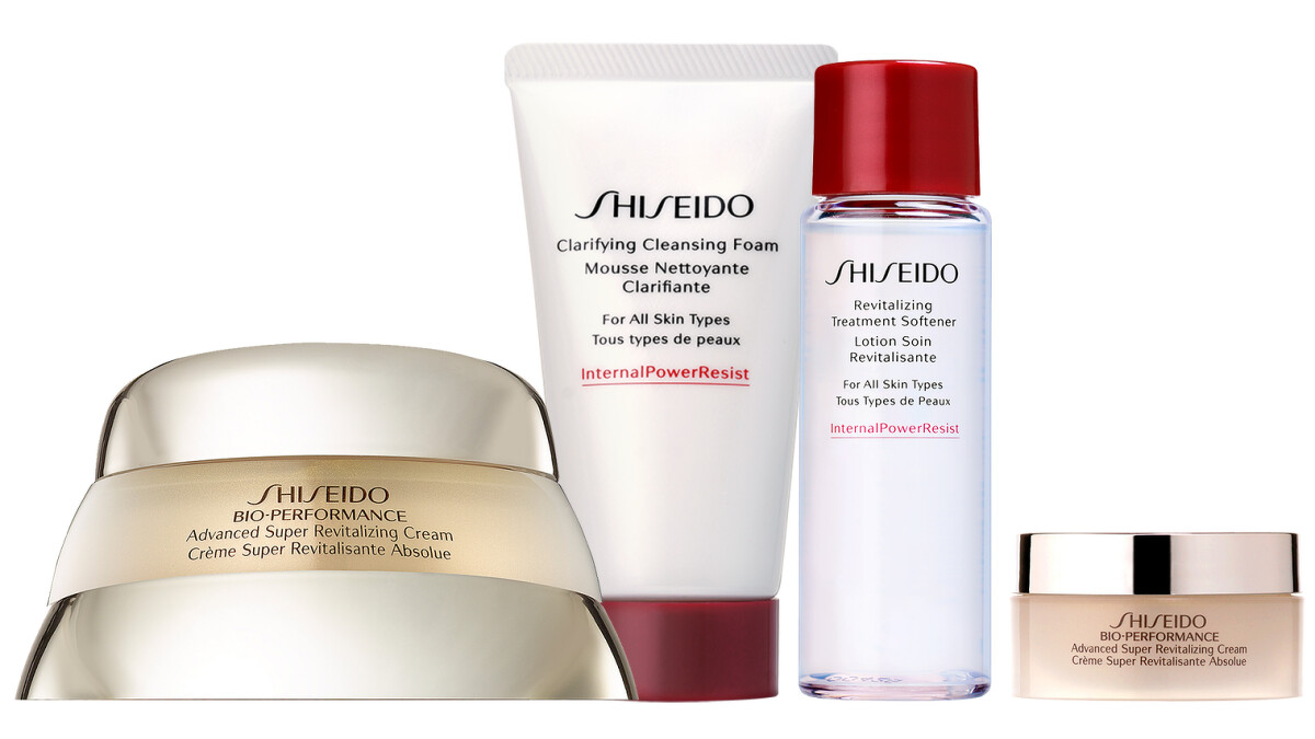 內容:百優精純乳霜50ml、百優精純乳霜 18ml、活妍淨泉露(豐潤型)30ml、資生堂保濕潔膚皂50ml。