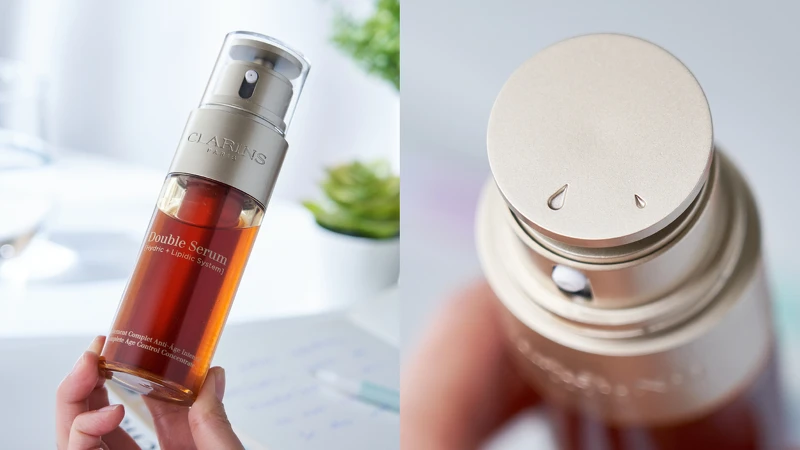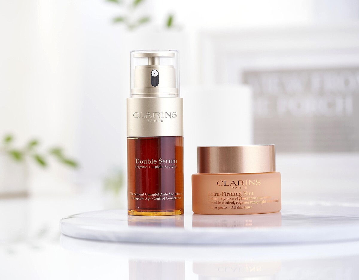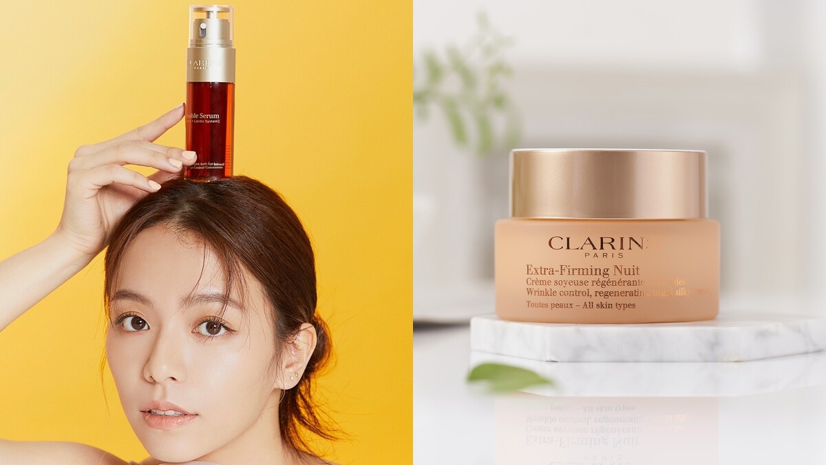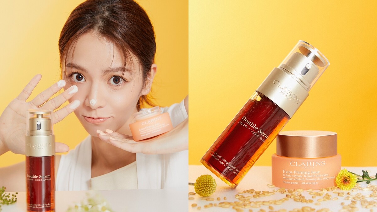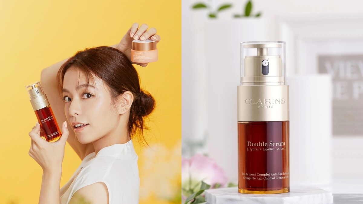 針對經常熬夜拍戲無法避免的肌膚倦容、疲態等「老化前兆」,宋芸樺後來更在彈簧霜之前,加一道擁有貼心刻度應因應不同膚狀的克蘭詩超級修護抗老巨星----黃金雙激萃!