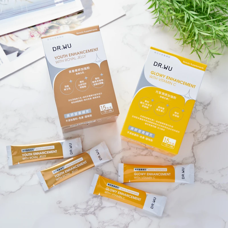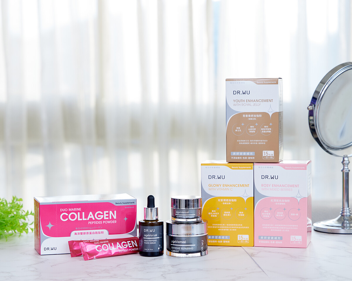 除了「海洋雙膠原蛋白胜肽粉」,這次DR.WU還推出獨家三款美肌加強粉:「光皙潤透加強粉」、「紅潤氣色加強粉」、「青春養妍加強粉」,精準對決每個人的肌膚問題,根本最佳美肌應援團~