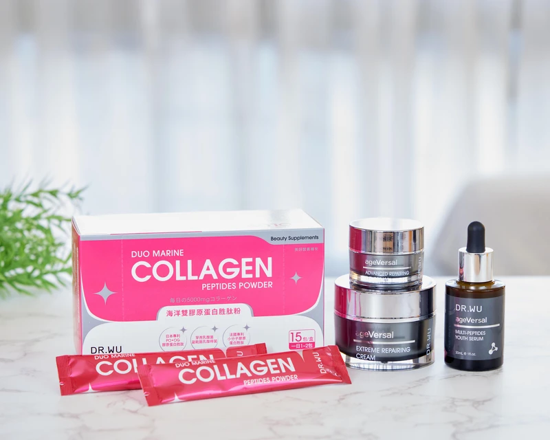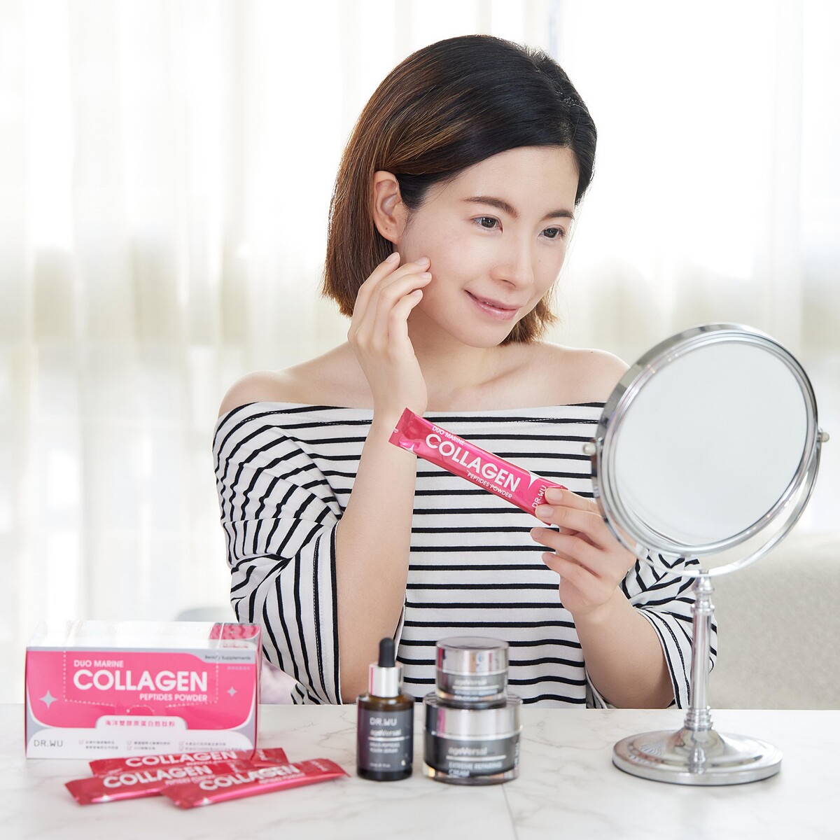 想要找回年輕,用對方法讓你不走冤枉路、不用花大錢!靠內服DR.WU「海洋雙膠原蛋白胜肽粉」+外用「超逆齡修復系列」,美肌效果直飆2倍以上,摸起來細緻滑嫩,看起來澎潤Q彈,視覺年齡直接立減5歲不誇張~