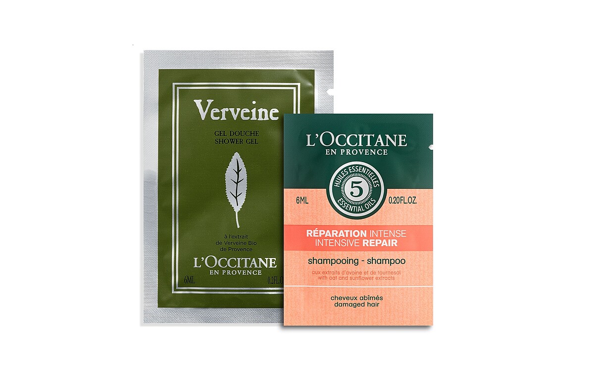 只要於活動當天攜帶非彩妝類美妝空瓶於店內回收,不限任何品牌、品類及件數,每回收一瓶就能獲得一份回收禮「草本修護洗髮乳6ml+馬鞭草沐浴膠 6ml」。