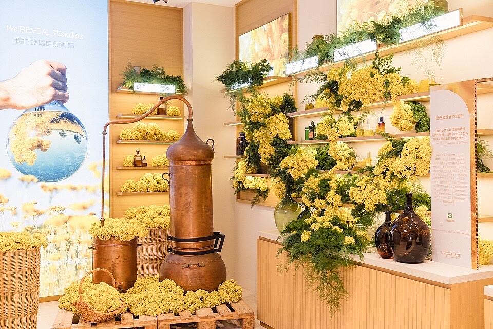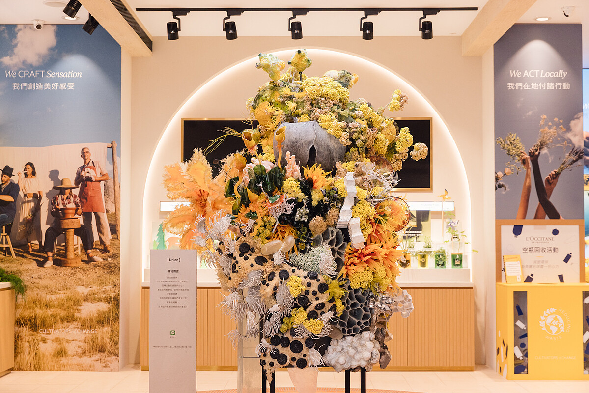 為響應永續美學,歐舒丹更特別攜手以獨特植物裝置藝術創作聞名的台灣藝術家李霽,與擅長將文藝涵養融入於自然素材構築出植物創作中的Temperature Studio 溫度物所,為店內空間打造綠意時尚,將產品空瓶回收再利用,並在藝術家的巧手下,結合植栽藝術創作出最有風格的作品,賦予廢棄物全新生命,以獨特美學植下嶄新的永續再生信念!也呼應著歐舒丹持續推廣的空瓶回收再生、空瓶折抵、環保補充包等消費行動。