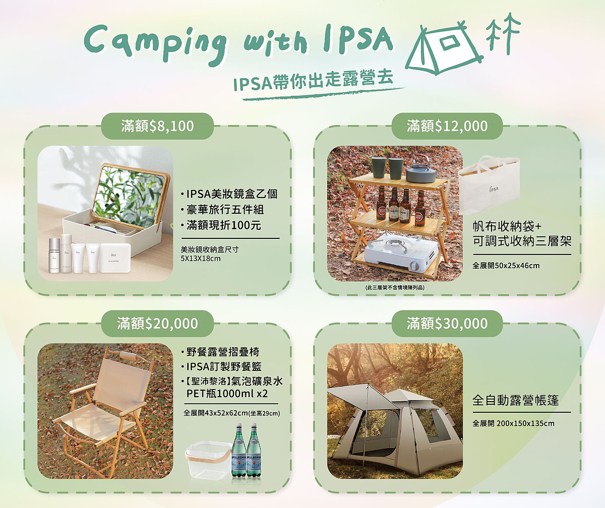 - 亮點4. 超狂滿額贈品,IPSA帶你出走去露營