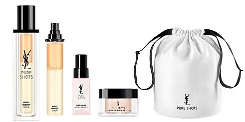 內容:極效活萃夜光仙人掌超級精華50ml、極效活萃夜光仙人掌超級精華補充膠囊50ml、極效活萃淨亮晶透露30ml、極效活萃舒芙蕾乳霜7ml、YSL純白迷你水桶包。