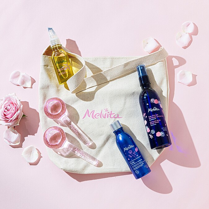 內容:玫瑰花粹200ml正品+玫瑰潤澤美容液100ml正品+玫瑰摩洛哥堅果油50ml正品+美容按摩冰球+Melvita帆布提袋。