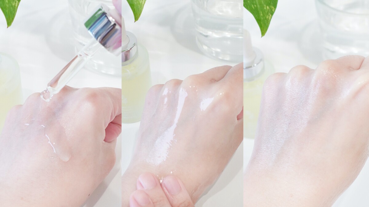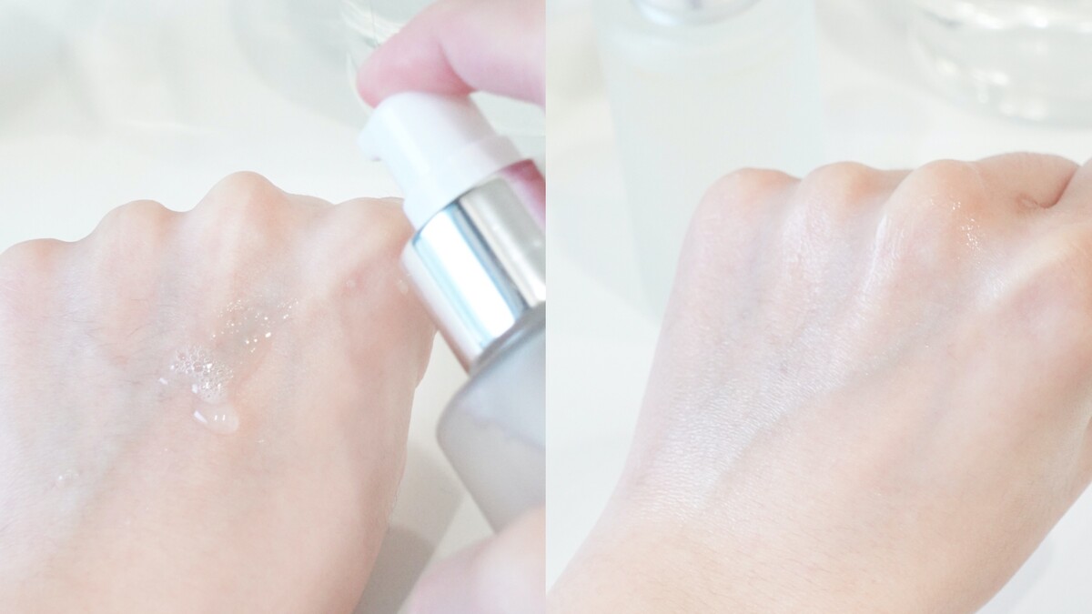 超乎想像的清新水感質地,一年四季都適用,推開直接在肌膚上爆水,迅速被吸膚吸收後,我的天~超級神奇的事情發生了!!才剛吸收完,原本暗沉乾燥無光的肌膚,馬上閃出透亮光澤!