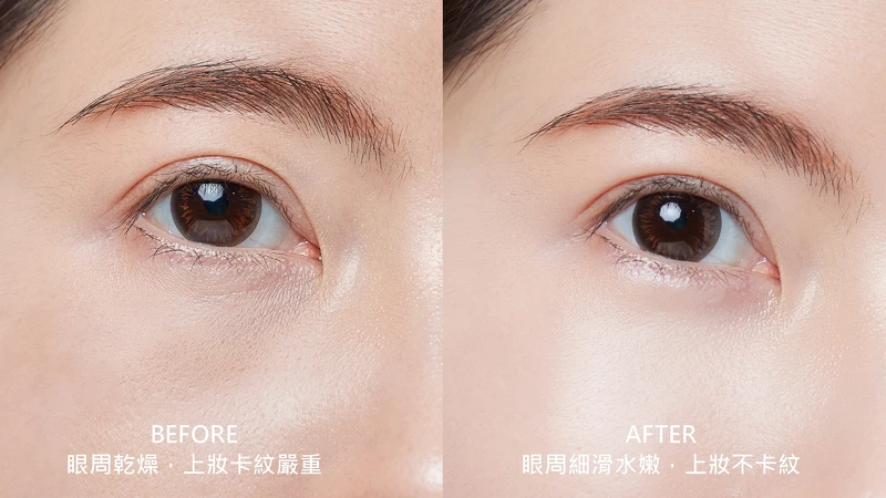 不只底妝怕脫妝卡粉,眼下肌膚更怕卡細紋,看起來超顯老,視覺年齡直接+5歲@@這款「黃金亮眼萃」出了名的好吸收又保濕,妝前用也不怕跟底妝打架,而且還讓眼周更滑順好上妝,完全不怕卡紋,眼周的妝容超細緻緊實。