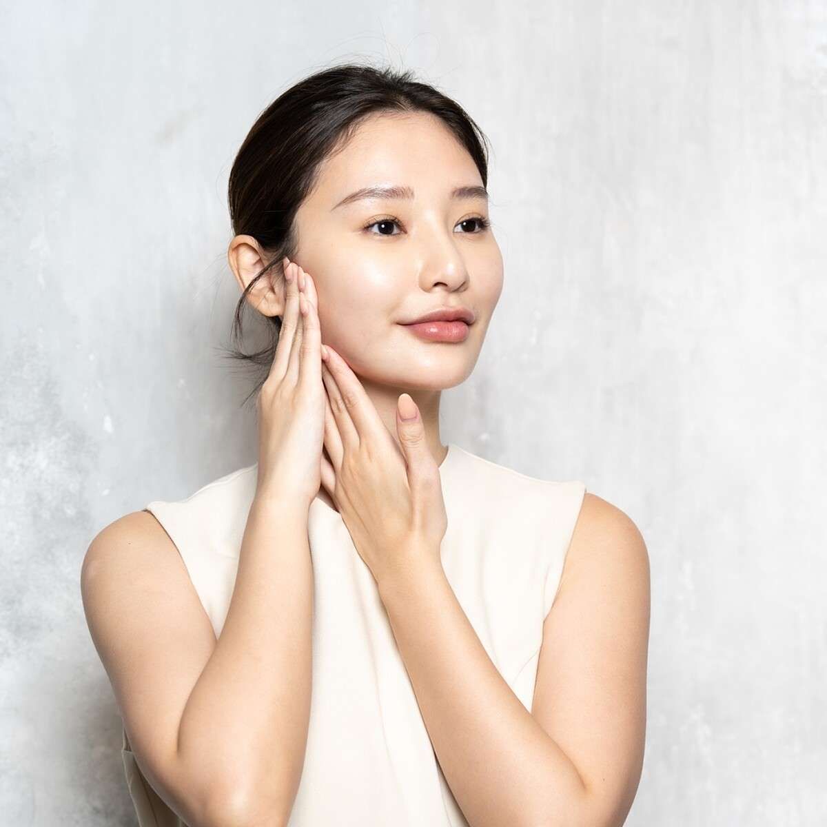 從下顎延伸至耳垂、嘴角至耳窩、蘋果肌至太陽穴、前額中央至兩側額頭,以手指由中央至兩側向上拉提各3次。