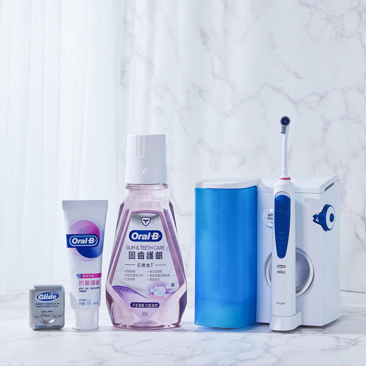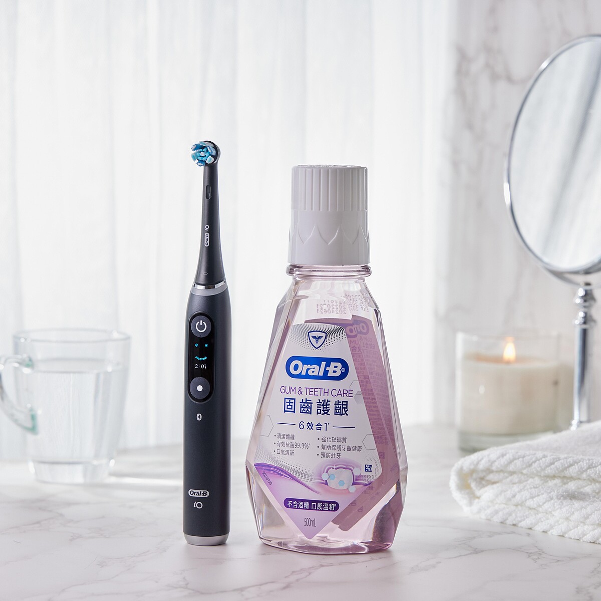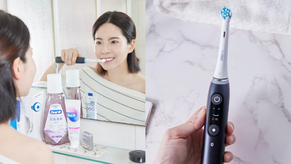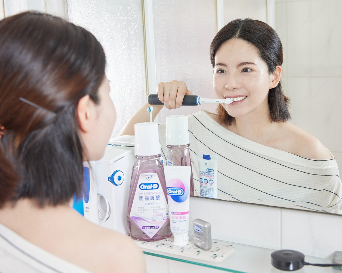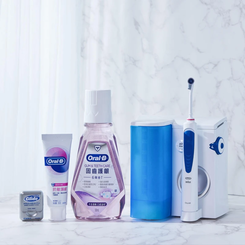除了搭配Oral-B「iO9 微磁電動牙刷」+「6效合1漱口水-固齒護齦」,還有系列產品:高效活氧沖牙機、抗敏護齦牙膏、歐樂B牙線,全方位守護牙齒牙齦健康~