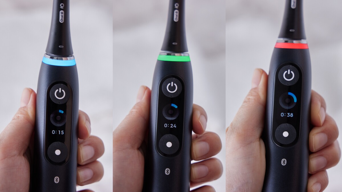 擔心清潔力過強傷害牙齒與牙齦嗎?M編放心交給「iO9 微震科技電動牙刷」的"三重智能壓力感應燈",擁有紅白綠燈三色感應,可以精準控壓。在刷牙時施加過大壓力時,會以閃爍紅燈提示示警,而使用正確力度時便會亮起綠燈,白色燈則是力道過輕。