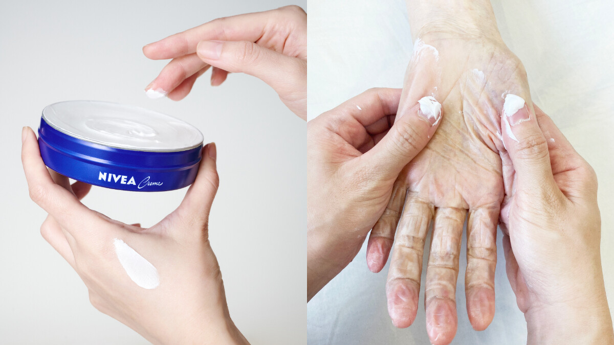 說起這段回憶,連美恩的語調變得溫柔。她分享,洗完澡後,在協助阿嬤穿衣服的過程中,她發現阿嬤的雙腿特別乾燥,甚至有皮屑脫落的情況,後來經過友人推薦,她開始使用妮維雅深層修護乳液,搭配小藍罐輪流為阿嬤做保養,經過一段時間的細心呵護後,原本乾燥發癢的雙腿,也慢慢變得柔嫩起來。