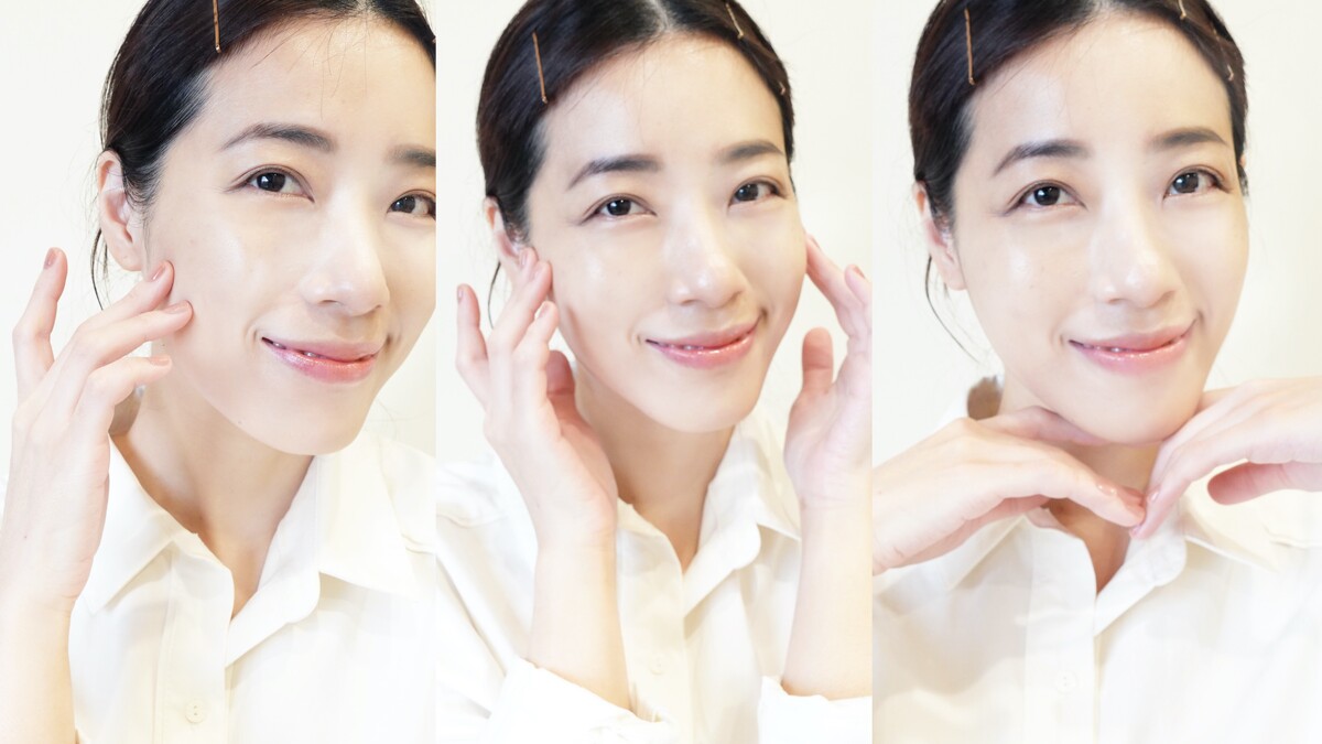 拍: 從臉夾中心由往外內輕拍,用手指輕輕將水凝乳拍入肌膚,滲入肌底。