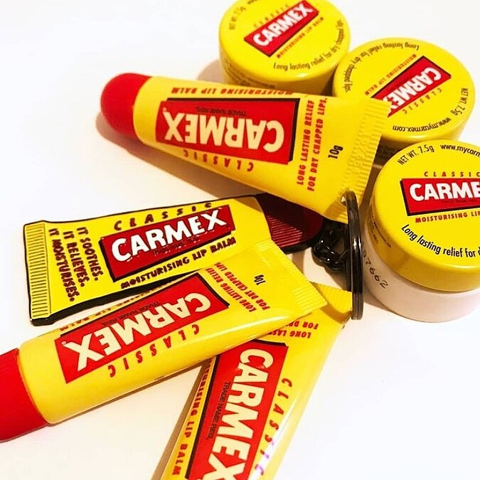 Carmex小蜜蜜媞護唇膏的歷史也很久遠,是1937年品牌創始人Alfred Woelbing為了抵抗威斯康辛州嚴寒氣候所創造出來的,成份中包括可可脂、蜂蠟、綿羊油(羊毛脂)等多重保濕因子,可鎖住嘴唇表面水分。也可以適合當成口紅打底、晚安唇膜使用。
