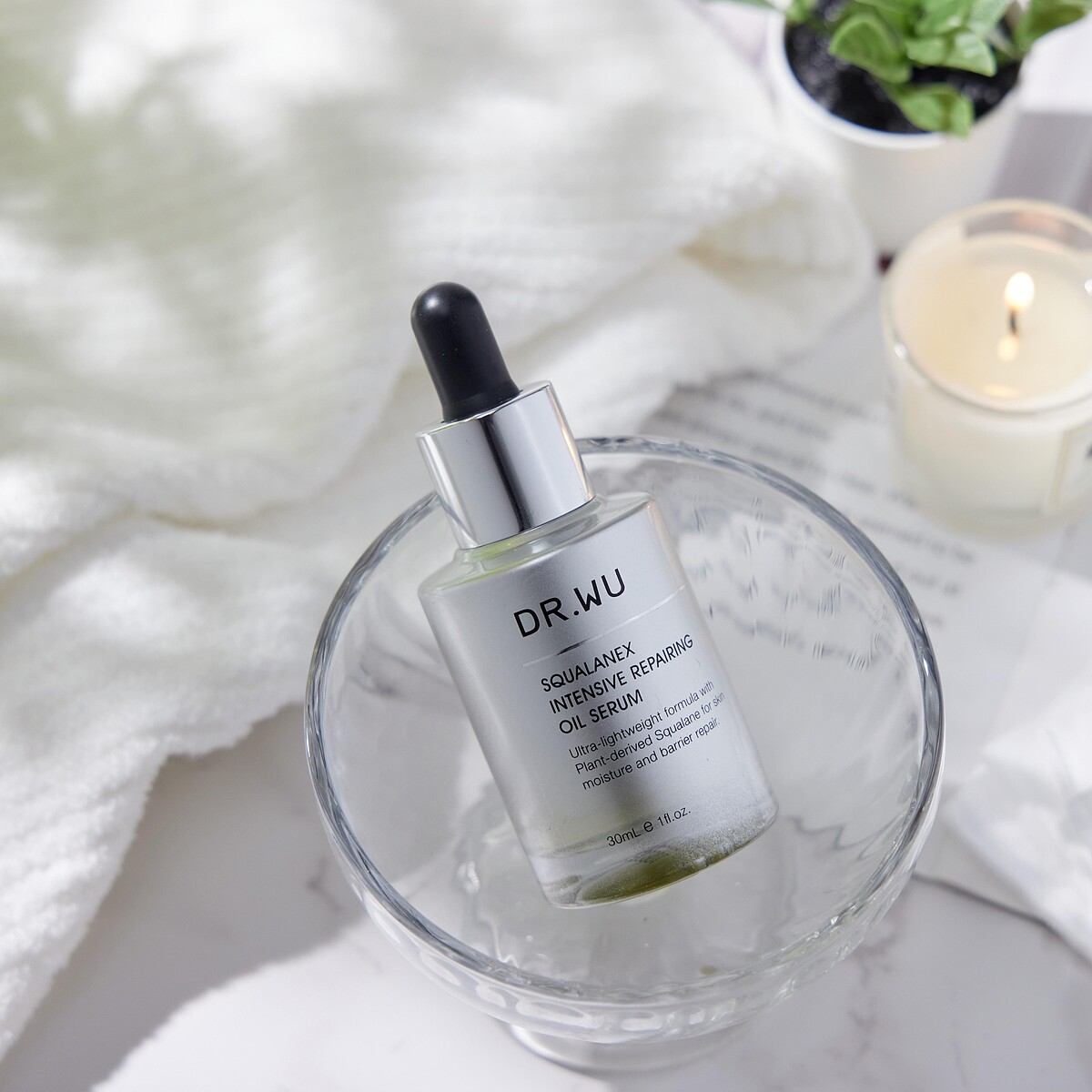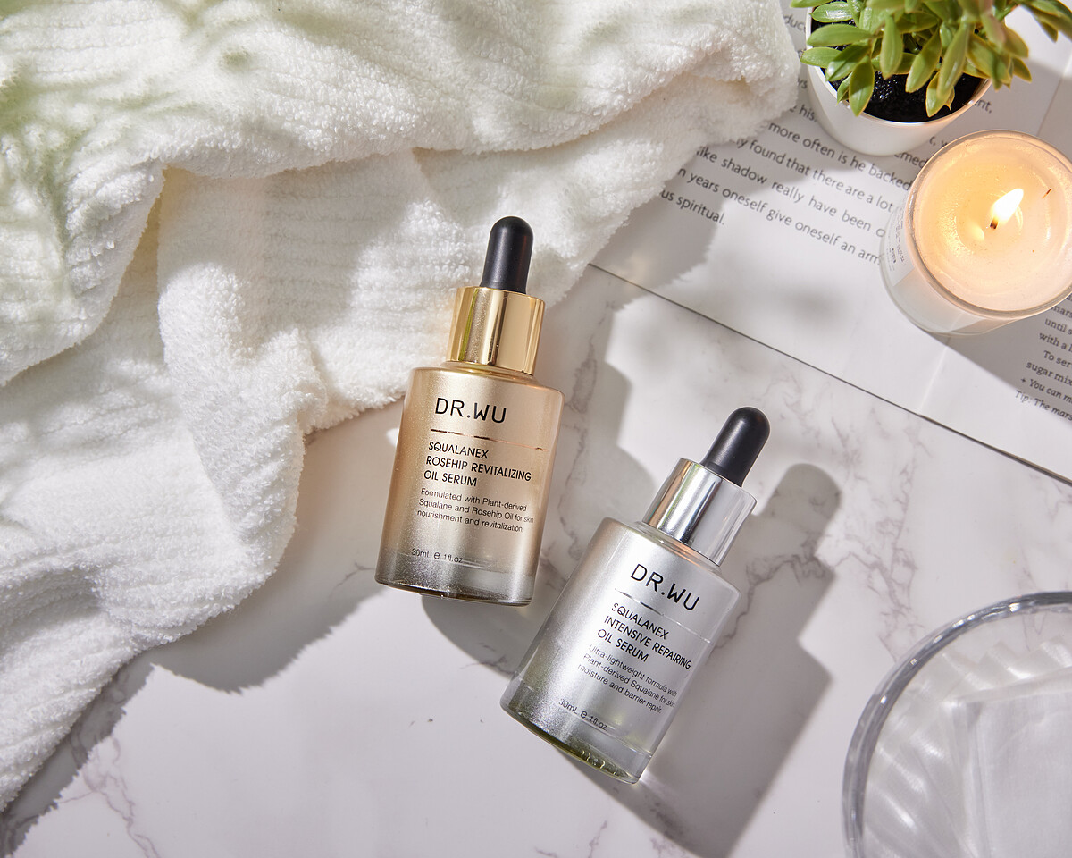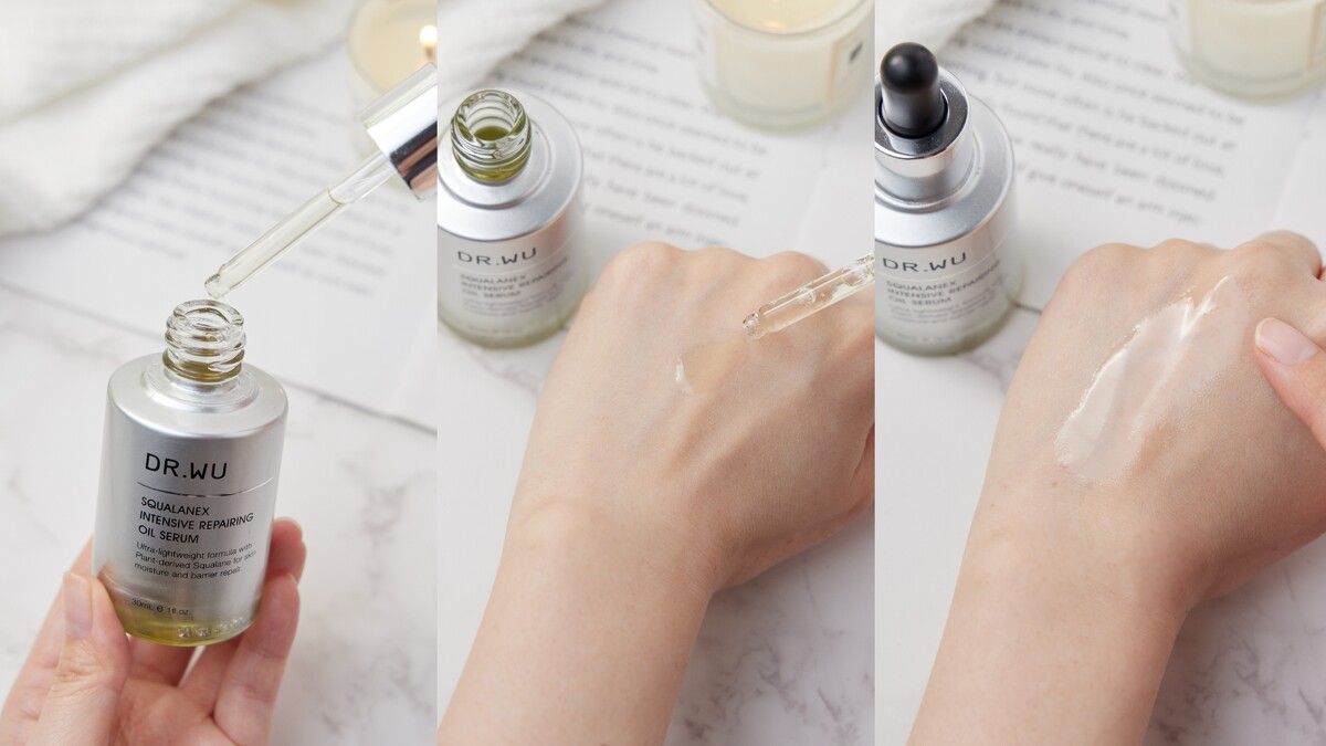 而保養權威DR. WU就是比你更懂肌膚~推出角鯊植萃修復系列,專為乾燥缺水、粗糙暗沉的肌膚量身打造,利用95%高純度植物性來源頂級角鯊烷,萃取自法國南部莊園橄欖,更穩定更親膚,搭配3重精華油+植物精粹概念,只要1滴突破5大保養關卡,達到潤澤、保濕、撫紋、提亮、膚況更穩定。重點是質地超級輕盈,是精華油卻完全不悶、不黏、不致痘,油肌也能放心用沒問題!