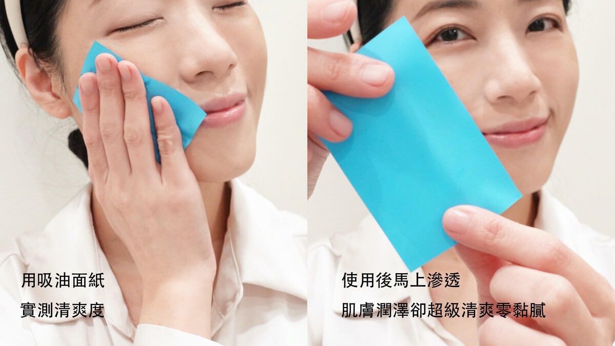 M編實測:質地輕盈潤澤,快速滲透清爽零黏膩PLUS保濕度瞬間飆升無可挑惕!