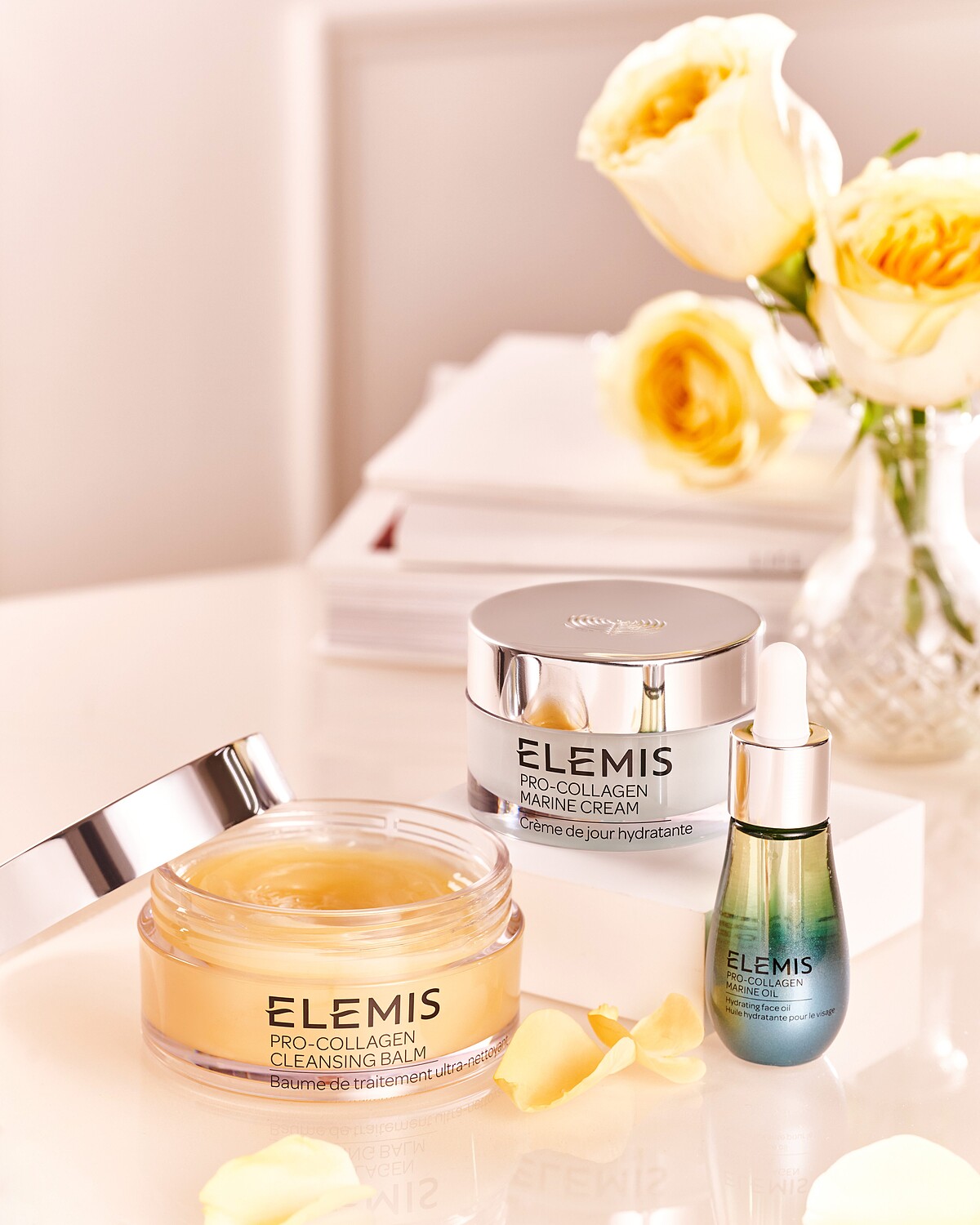 新的一年想要養好膚質,保養老司機一致推薦Elemis「海洋膠原修護三部曲」:首先當然先以「療癒黃罐」海洋膠原精油卸妝膏,之所以有療癒美名在於有著三分溫軟、七分滋養的美肌效果,卸除日常彩妝外,連帶把毛孔內皮脂髒汙通通淨空,摸的到柔軟無比的滑嫩與乾淨!再搭配凝聚一整片大海修護能量「海洋藻安瓶」,完美的油水比例、超好吸收,用完後肌膚充滿彈潤與光澤。最後再用「海洋藍霜」海洋膠原緊緻精華乳霜,超特別的乳霜質地,摸起來非常綿密豐潤,但擦在肌膚上就像水凝乳一樣極度輕盈,能牢牢留住水潤緊緻感。三樣保養神物就能養出澎潤透亮的好命顏!