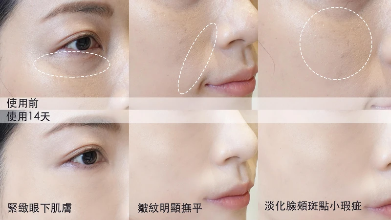 身為敏感肌的M編使用兩週後的肌膚變化,連原本被摧殘的疲憊不堪、又乾、紋路又深的膚況都能短時起死回生,還我勻淨透亮的臉蛋,臉頰柔滑又Q彈無敵膨潤,一口氣回歸到平滑柔嫩、緊緻彈潤的最佳狀態!
