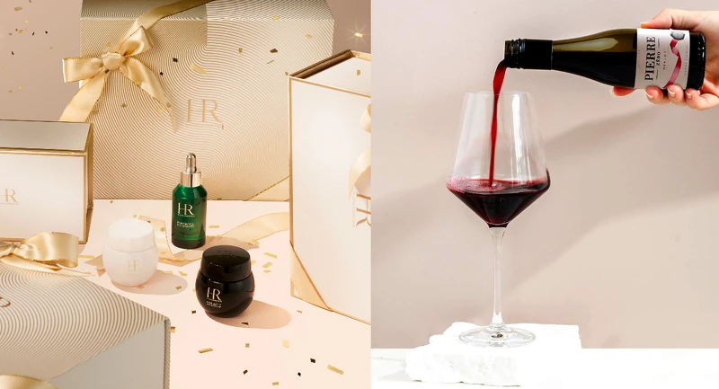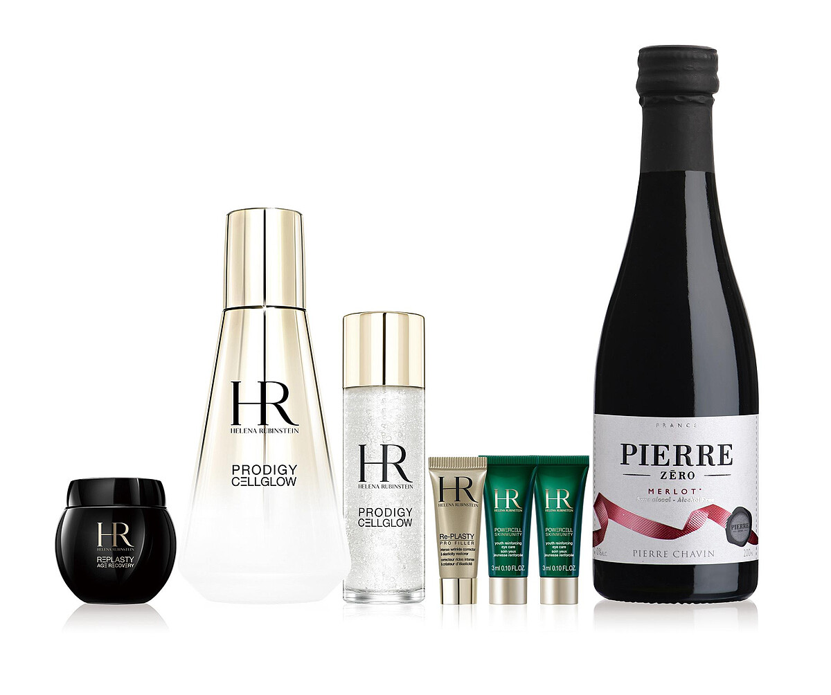 HR赫蓮娜限量推出【法式甜醺情人節獻禮】買任一明星組合即贈「法國夏凡酒莊經典無酒精紅酒風味飲200ml」更享情人節限定「法式奢華包裝服務」以奢金緞帶圍繞法式質感禮盒,啜飲一口精緻層次優雅果香,散發迷人溫和香氣;搭配赫蓮娜明星商品,打造精緻巔峰膚況!