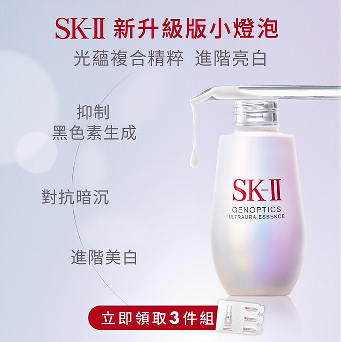 1新升級版小燈泡為消費者對SK-II 光蘊臻采煥亮精華的暱稱,並非產品正式註冊名稱,非指產品功效,實際效果因人而異。