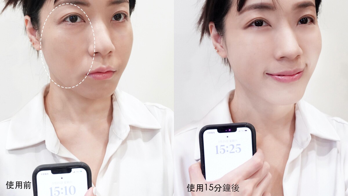 15分鐘撫平動態紋路,絕對不是說說!編輯第一時間就搶先實測,像是最明顯的眼角細紋、法令紋全都淡化緊繃,肉眼一眼就輕易看出前後得差別!