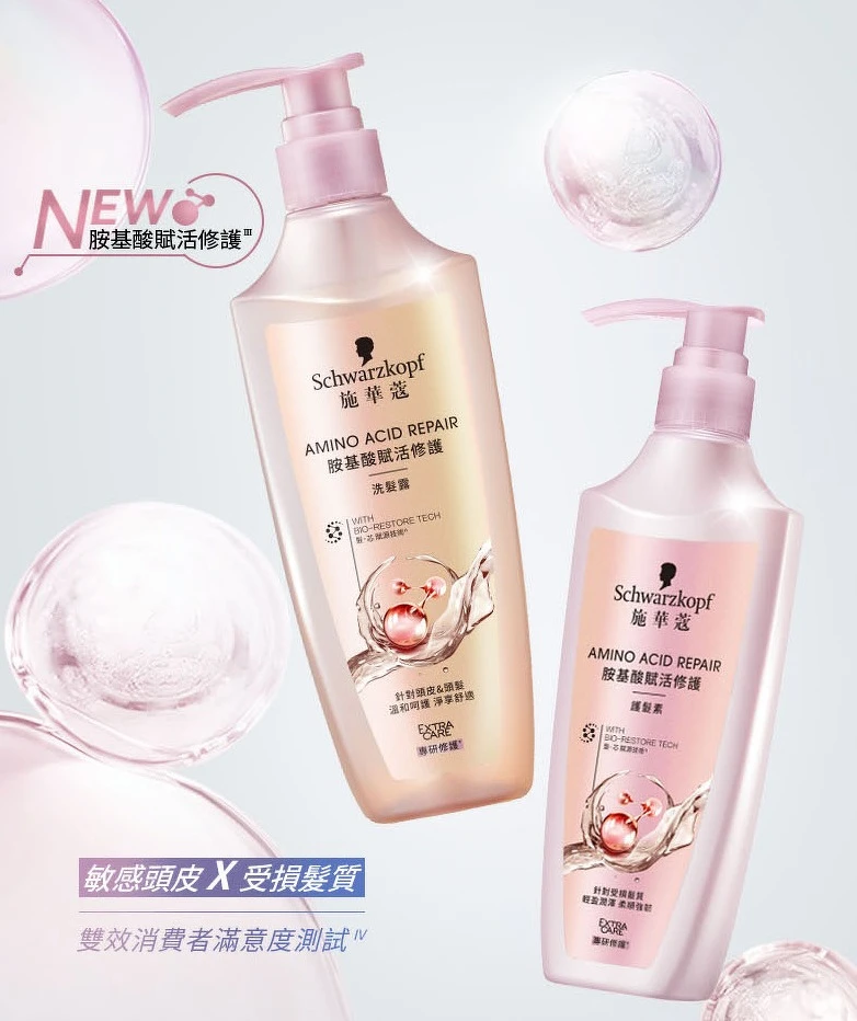 胺基酸賦活修護系列,用了臉部護膚等級的8重胺基酸 × 專研凝萃精華(紅石榴、葡萄籽、麥蘆卡蜂蜜),加上芯生重建科技,幫因為清潔力太強(或不足)而鬧小情緒的頭皮頭髮,帶來柔順溫和修護力!每次洗頭,頭皮與髮絲都能在鎖水保溼洗淨力與高定花木香氣中,變得柔順又強韌、每天好聽話。