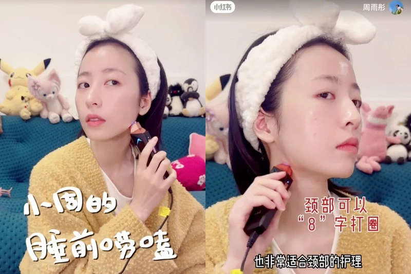 如果已經進入25歲後開始擔心細紋的大家,可以參考周雨彤在保養中加入美容儀的方法。她真的非常愛用美容儀,因為可以幫助保養品吸收的更徹底。建議可依照個人預算及需求選擇冷熱型、電流或有音波等選擇,都能讓保養更深入。