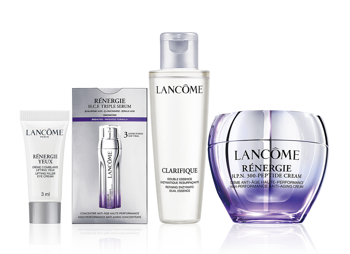 各家百貨週年慶熱烈開跑之際,當然有適合新客入門的全檔期優惠組合!「超緊顏抗痕霜組」不僅買胜肽霜就送,送的產品更是明星商品極光水,還有同系列的三效精華、抗痕眼霜,蘭蔻真的是寵粉霸主!買一就送閉眼買都好用到失心瘋!和姊妹約好一起年輕不露「線」,封神組合必須收!