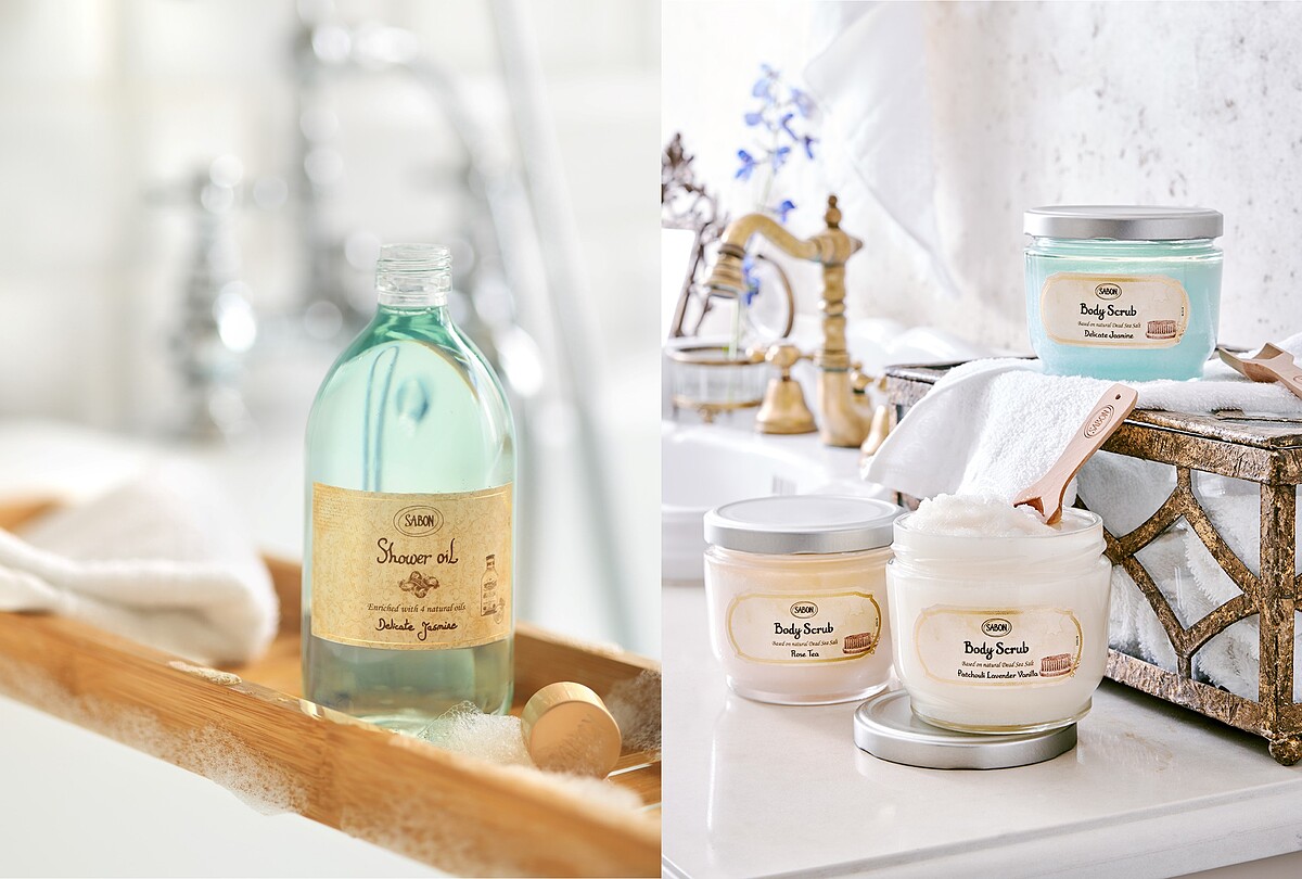 在日本也超受歡迎,入門SABON不能錯過人氣最高的明星三部曲!連最懂沐浴的日本女生都喜歡,透過沐浴油、身體磨砂膏和身體乳「清潔、磨砂、修護」三步驟,沉浸在療癒香氛中,把疲憊壓力和暗沉角質一起掃去!洗後肌膚柔滑嬌嫩還散發淡雅幽香,那種滿足愉悅~把日常瑣碎變得充滿儀式和期待!SABON沐浴油以橄欖油、荷荷芭油、小麥胚芽油和酪梨油讓洗後肌膚柔嫩不乾澀;身體磨砂膏使用天然死海鹽搭配多重植物油,溫和去角質、給肌膚最奢華的滋潤;身體乳則有保濕潤膚霜、輕盈的絲綢身體乳與清爽凝凍,多種質地適合各種膚質需求,難怪日本女生身上都透著光呀!
