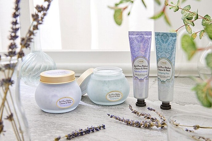 除了明星三部曲,SABON的臉部保養系列也超值得收!「二合一臉部純淨磨砂膏」在SABON專櫃上熱賣、網路討論度超高!將洗面乳結合磨砂膏,清潔同時也在替肌膚溫柔拋光~透過保濕成分復活草、天然死海礦物鹽,帶走髒污和老廢角質持續保濕滋養美膚,使膚況恢復光滑透亮、柔嫩健康!伴隨清新薄荷香或是療癒紓壓的薰衣草香氣,原來洗臉也可以如此享受!
