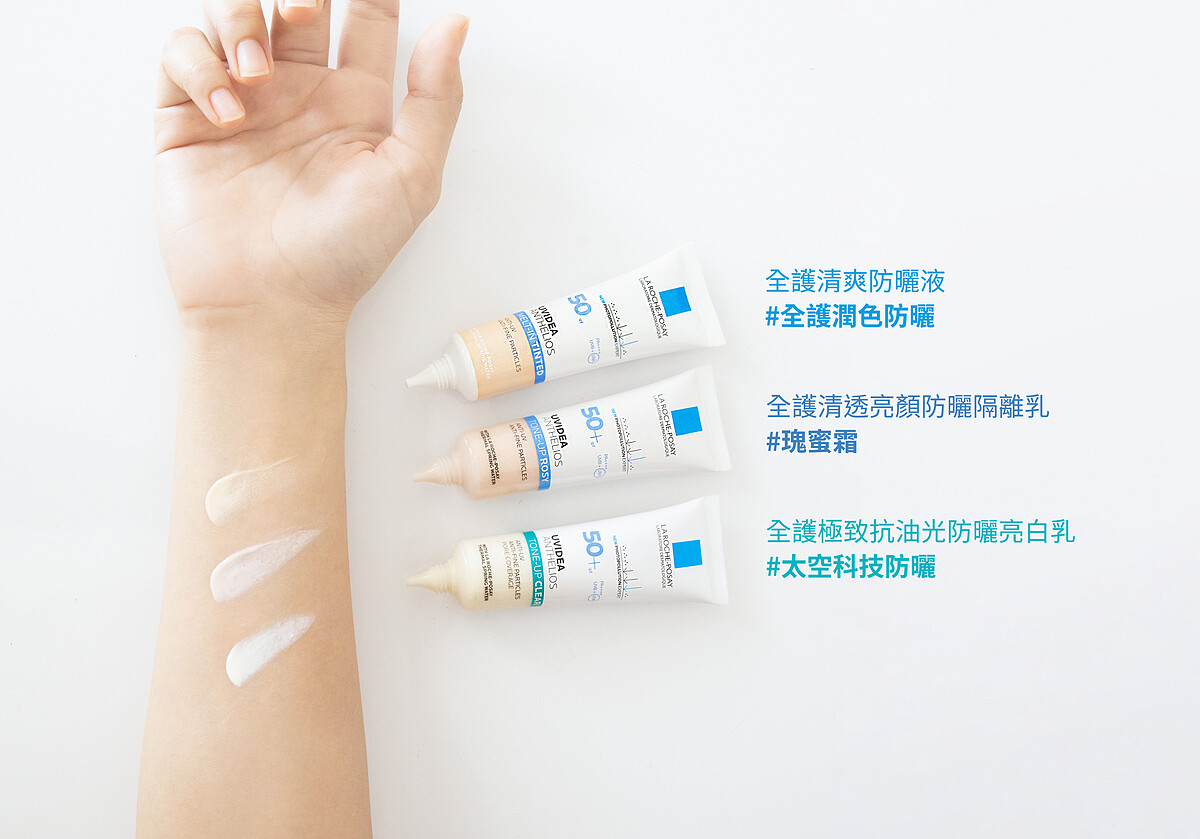 勻亮無瑕裸光肌#全護潤色防曬:喜歡膚質細膩無瑕,就選這款全台熱銷第一的防曬冠軍!理膚寶水《全護清爽防曬液》自然裸膚色質地,1步驟就能隔絕光傷害+修飾毛孔瑕疵!添加維他命E與抗老化成分,防曬+打底+養膚!單擦就能擁有細膩勻亮好膚質!還能當妝前乳用,讓粉底更透亮、持久服貼!