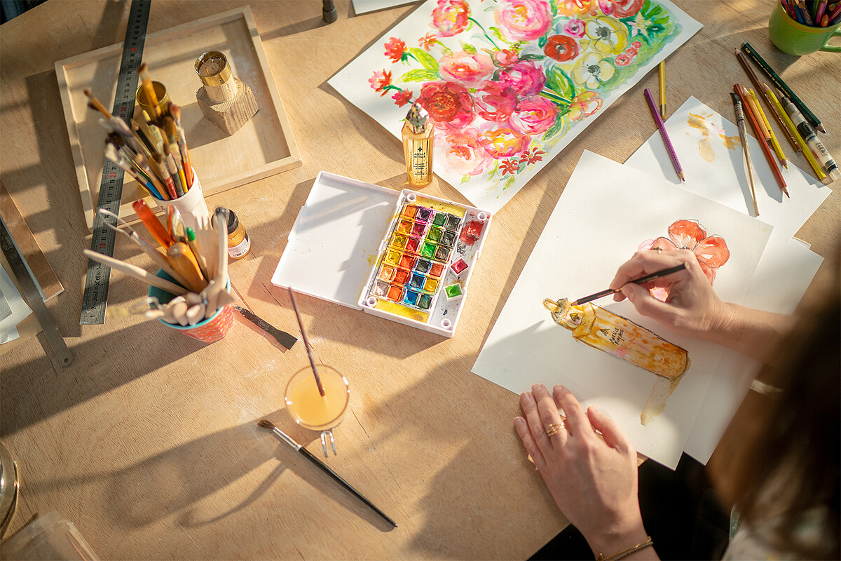 瑟琳•坎隆是一位法國知名的女性畫家、雕塑家、視覺藝術家。為了創作2023「嬌蘭皇家蜂王乳平衡油 BEE藝術聯名版」的限量包裝圖樣,她以自己對大自然的熱愛作為靈感發想,打造出一幅奢華、繽紛的水彩畫作,表現出生機盎然的花園景緻,而小小的主角──蜜蜂則自由穿梭花叢間,跳著屬於大自然的生動芭蕾舞。