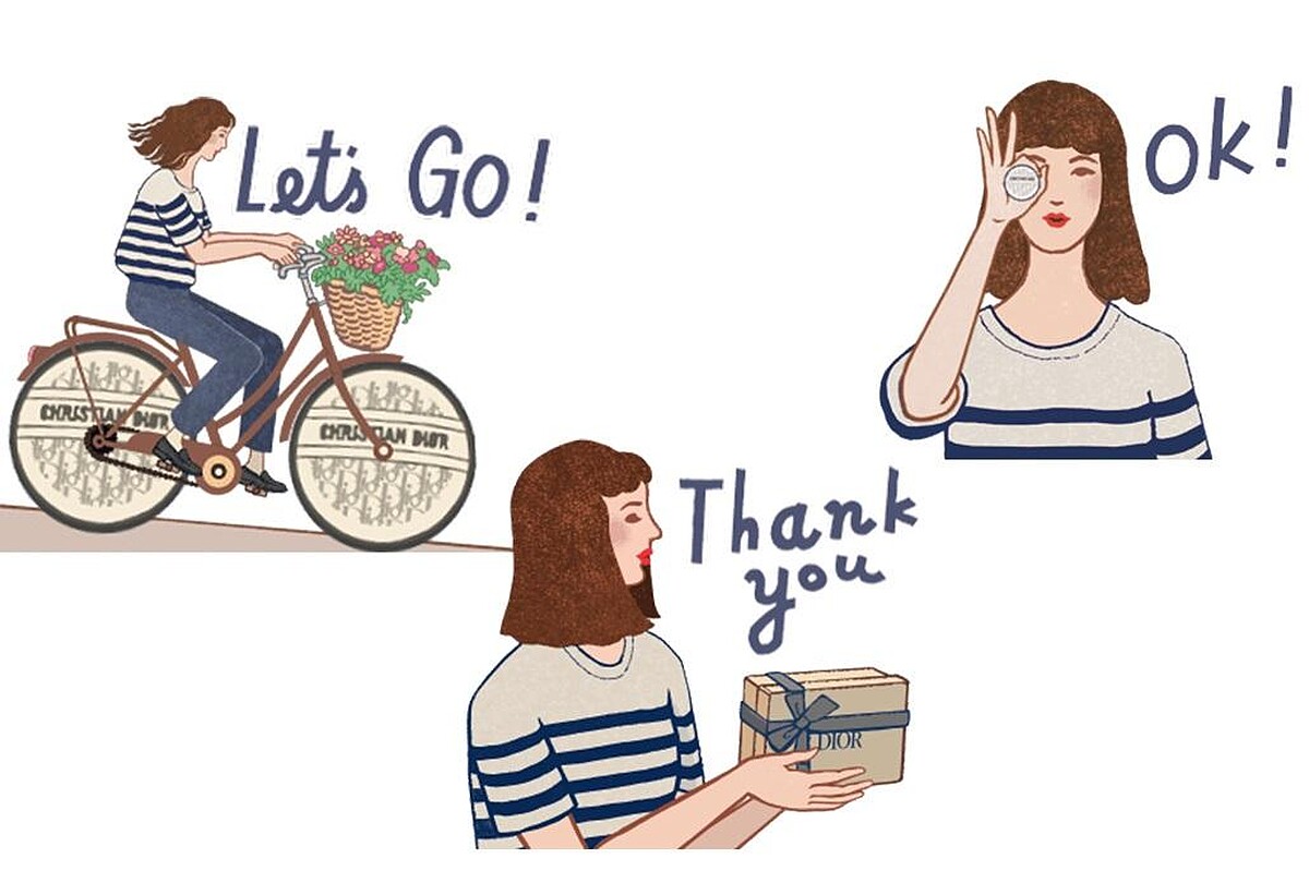 發現這組DIOR LINE貼圖中的小亮點了嗎?插畫家鄒駿昇巧妙地把《迪奧緹花全能修護霜》融入貼圖中,變身腳踏車、OK手勢,並以滿月和圓形鏡頭凸顯緹花小白球圓潤的弧度,細節描繪得超精緻!
