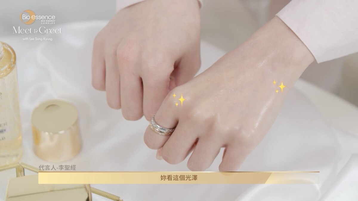 李聖經也提到自己相當重視去角質,一星期可能會去兩~三次的,深層清潔肌膚,此時再搭配高滲透、好吸收的保濕保養品,像是最近成為保養品牌碧歐斯的代言人,他也特別提到「光澤是因為做好保濕!」除了乳霜外,她喜歡使用精華或精華水來補充肌膚營養、水份,碧歐斯的Pro 黃金露就是他的愛用品。「它像水一樣很快滲透吸 收,然後立刻讓肌膚透亮發光!」非常開心的跟大家介紹她個人最喜愛的產品,這款黃金露新升級的微米黃金胜肽高滲透、高功效的機能是她非常喜歡的特色。