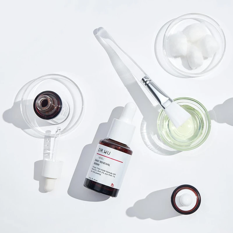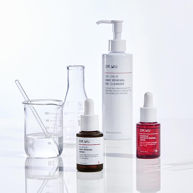 DR.WU 自2011 年推出第㇐瓶杏仁酸煥膚精華旋即稱霸台灣與海外市場,樹立酸類煥膚專家地位!今年6 月,DR.WU 選在品牌創立20 周年升級經典配方,推出全新黃金比例「杏仁酸溫和煥膚精華8%」,搭配「杏仁酸溫和煥膚潔膚露」,讓敏弱肌也能安心煥膚,擊敗肌膚暗沉、粉刺困擾!亞洲皮膚科權威教授吳英俊醫師指出,角質層是肌膚的最外層防護,當角質新生週期失調、老廢角質、脂質堵塞,粉刺、痘痘等問題也會接踵而至,因此會推薦定期使用安全的酸類成分進行煥膚、照護角質正常代謝來維護皮膚的健康,而乾性、敏感性膚質在角質代謝產品的選擇上更需小心,煥膚後也需要更注意保濕與防曬,才能安心煥膚、照護肌膚的健康。