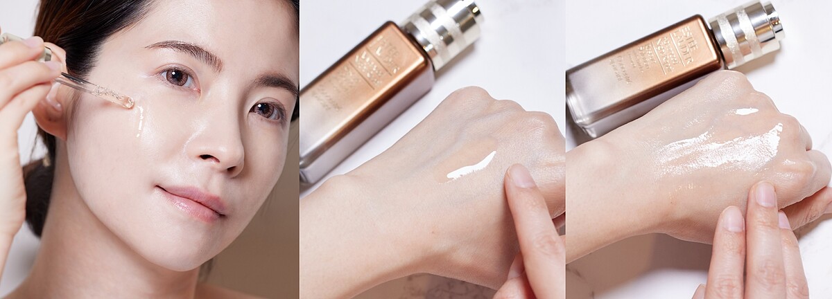建議每天早晚全臉使用「小棕SOS安瓶」,並加強疊擦在容易敏感泛紅或乾燥脫皮的重點部位,像是:鼻翼、臉頰…等,幫助改善泛紅瑕疵、粗大毛孔等瑕疵,為肌膚擊退敏感,讓全臉狀態快速恢復穩定健康。接著使用滿載雅詩蘭黛獨家專利成分「極效修護三胜肽-32」的超經典小棕瓶,全方位修護x抗老x保濕,給予肌膚日夜不間斷的修護,每一滴都蘊含7大修護力,宛如讓肌膚睡足八小時美容覺,幫妳輕鬆擺脫熬夜、睡眠不足的肌膚疲態,細紋黯沉Bye,肌膚越來越年輕!