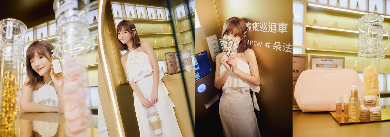 透過展區的圖片與文字,在這裡帶你認識更多DARPHIN朵法的品牌故事,更了解肌膚與身心共享療癒才是真正屬於朵法的美學定義。這次也特別邀請品牌大使Sandy吳姍儒錄製一段【今天星期姍Witty Wednesday 】Podcast,透過語音互動親自聊聊她的發光哲學,無論妳正在哪種階段或身份,一起來獲得愛自己、讓內心發亮的暖力量。