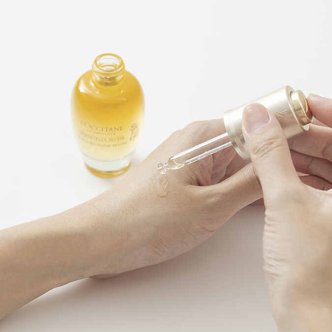 「蠟菊賦活極萃油」顛覆了以往對油保養黏膩不適的缺點,豐潤精純的油分子小且親膚,塗抹瞬間可迅速吸收,不在臉上停留油膩感,可提升肌膚飽滿度、修護受損肌膚、淡化細紋及改善凹陷與紋路等問題。成分中富含維他命E的摩洛哥堅果油,幫肌膚注入滿滿養分並長效鎖水保濕,恢復到油水平衡最佳狀態,肌膚就能彈嫩緊實。
