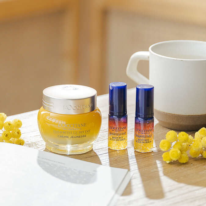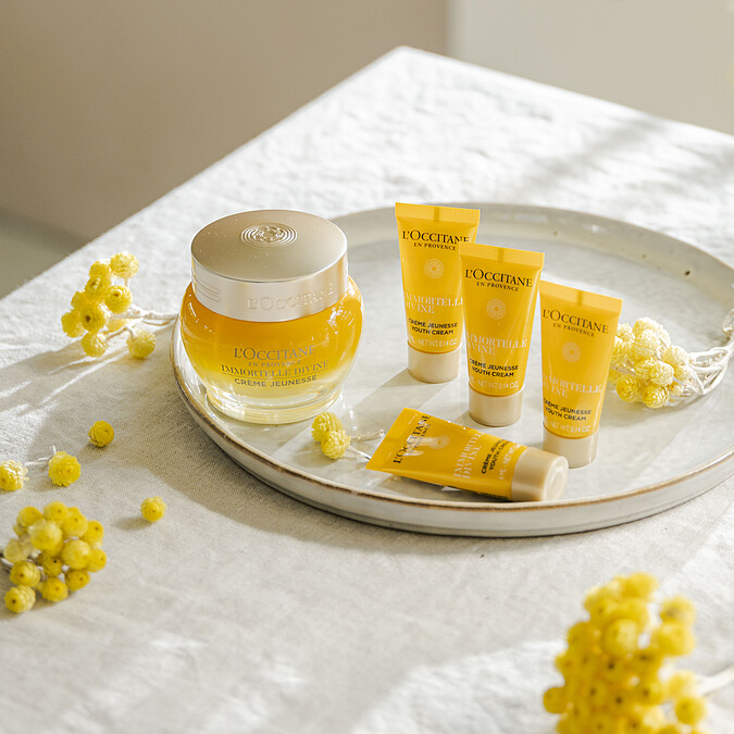 取自大自然,回饋大自然的歐舒丹,其中對於蠟菊更是一往情深,在M編的好奇下詢問才知道,原來因蠟菊具有摘採後不凋謝的特性,而有「不凋花」美名,正呼應了肌膚保養一直追求的永續美麗理念。歐舒丹創辦人Olivier Baussan於2001年意外發現了蠟菊,並領先業界將不凋花的神奇抗老力量運用於保養品中,攜手實驗團隊歷時20年研究,透過不斷升級的萃取技術,更堅持選用來自地中海科西嘉島的金黃蠟菊,它蘊含高濃度活性成分、抗老最高效;也積極向當地提出永續計畫,與科西嘉島多位栽種者攜手推動有機蠟菊栽植計畫,並建立長期合作關係,除了保證高品質蠟菊的永續供應,也對環境保護盡最大的心力。